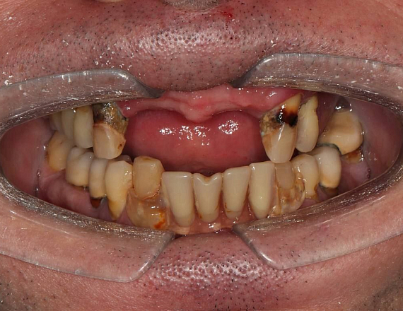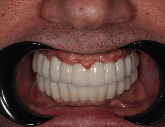 Проведена тотальная реабилитация цельнокерамическими коронками на верхней и нижней челюсти. Совместная работа врача стоматолога ортопеда Копина Виктора Андреевича и челюстно- лицевого хирурга, врача стоматолога хирурга- имплантолога Стрельникова Евгения Валерьевича